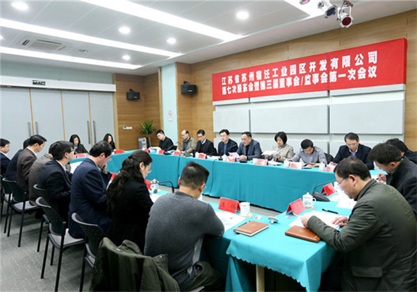 2014年3月5日下午,江蘇省蘇州宿遷工業(yè)園區(qū)開(kāi)發(fā)有限公司在蘇宿工業(yè)坊管理樓一樓會(huì)議室召開(kāi)第七次股東會(huì)暨第三屆董事會(huì)/監(jiān)事會(huì)第一次會(huì)議。公司全體股東代表、董事、監(jiān)事出席會(huì)議,部分離任股東代表、董事、監(jiān)事,園區(qū)工委班子、各局辦負(fù)責(zé)人,公司管理層及部門負(fù)責(zé)人列席會(huì)議。副市長(zhǎng)、蘇宿工業(yè)園區(qū)工委書記、管委會(huì)主任方文浜同志主持會(huì)議。