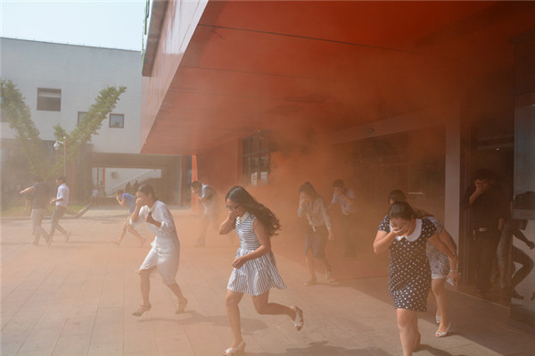 園區(qū)開發(fā)公司、建發(fā)公司部分員工及生產(chǎn)力中心、電子商務(wù)產(chǎn)業(yè)園商戶代表近百余人參加了此次演練,演練主要包括安全逃生演練和安全使用室內(nèi)外滅火器材。