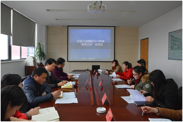 為搶抓春節(jié)招聘良機(jī),服務(wù)好園區(qū)企業(yè)用工,2月15日下午,園區(qū)召開2015年度“春風(fēng)行動”推進(jìn)會,可成、長電、天御、蘇瓷等7家園區(qū)重點用工企業(yè)參加了會議。